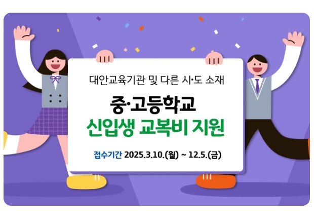 대안교육기관 및 타 시·도 학생을 위한 교복비 지원 혜택!
