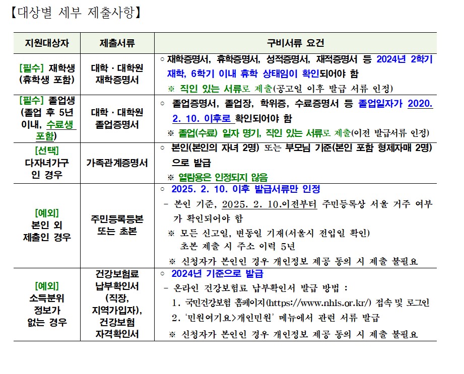 | 우선 지원 대상 | 소득 1~7분위 저소득층 및 다자녀 가정 |